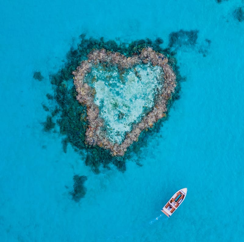 Helicopter flight over Heart Reef, Great Barrier Reef, Australia